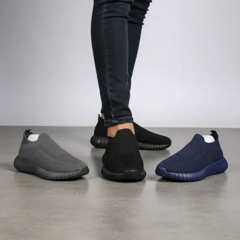 👟 حذاء خفيف و أنيق بتصميم مرن بدون أربطة، يناسب المشي اليومي و الخرجات، متوفر بثلاث ألوان : أسود، رمادي، و أزرق.